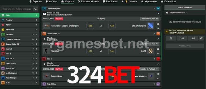 O 324Bet oferece uma grande seleção de opções de apostas em e-sports com probabilidades competitivas